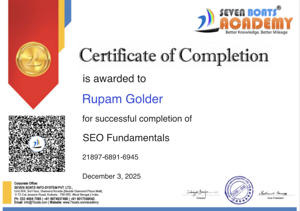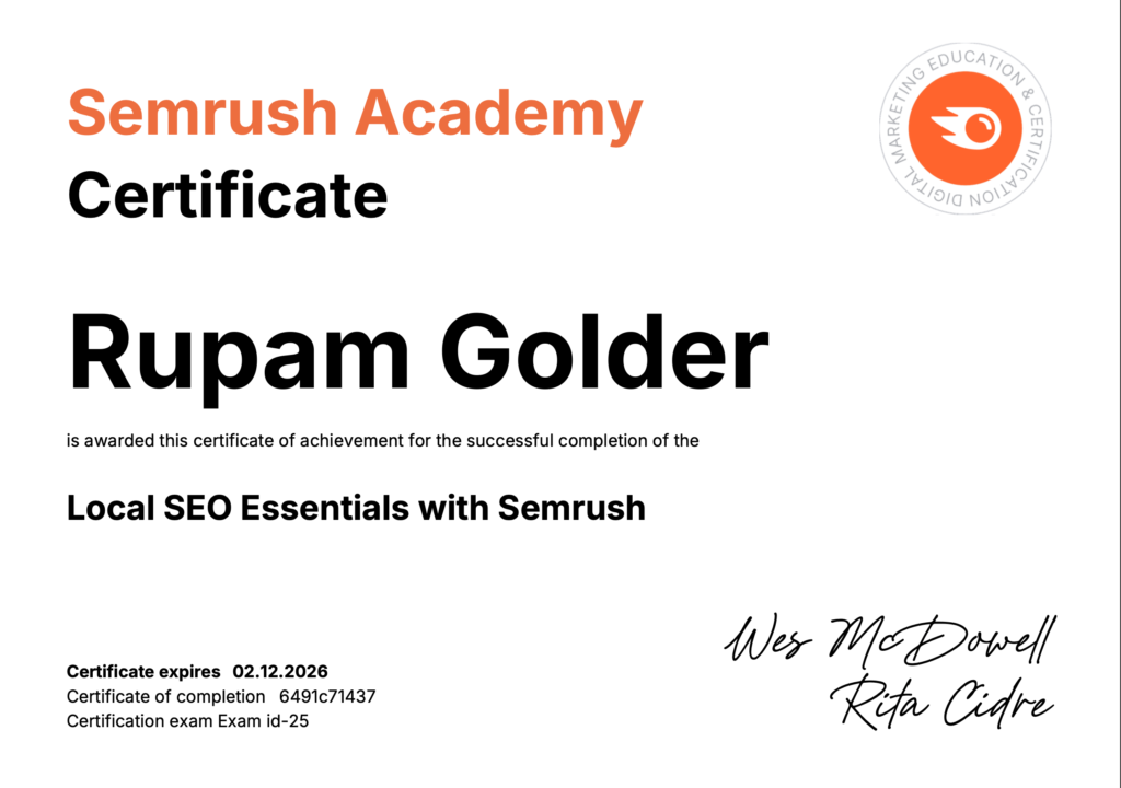 Rupam Golder, a professional SEO Specialist, helps businesses grow through powerful Local SEO and strategic Content SEO. I optimize Google Business Profiles, local rankings, and create keyword-focused, high-converting content that drives targeted traffic, builds authority, and increases real customer leads consistently.