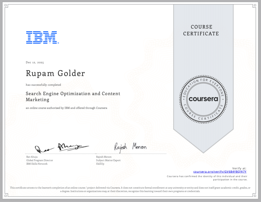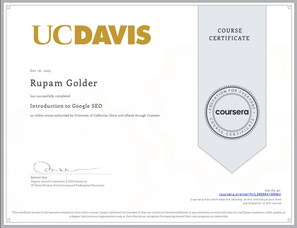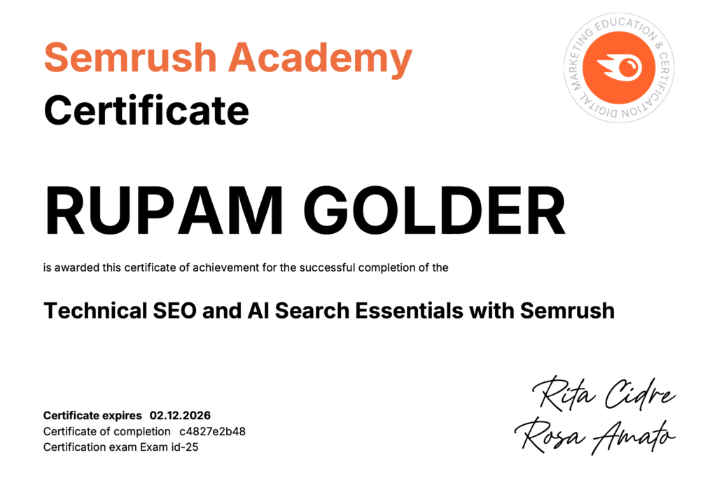 Rupam Golder – SEO Specialist provides result-driven E-commerce SEO and SEO Audit & Reporting services focused on growth and conversions. From product and category optimization to technical audits, competitor analysis, and clear monthly reports, Rupam ensures data-backed strategies that improve rankings, traffic, and sales. Every audit is actionable, transparent, and tailored to your business goals for long-term success.