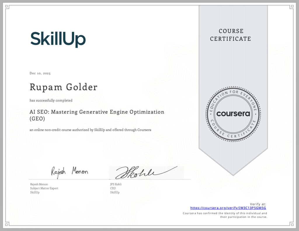 Rupam Golder is a results-driven SEO Specialist focused on increasing organic visibility, traffic, and conversions. With a strategic approach to on-page, technical, and eCommerce SEO, Rupam helps businesses build strong search presence and long-term growth. Every project is handled with data-backed strategies, transparent reporting, and a clear focus on measurable results that align with real business goals.